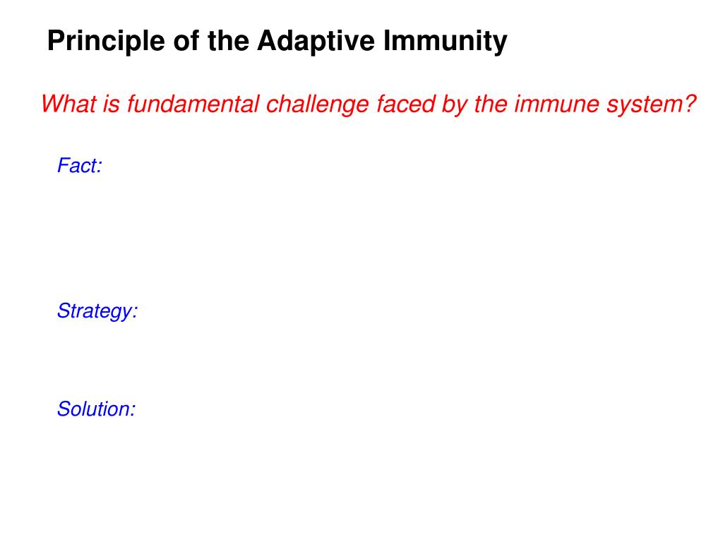Principle of the Adaptive Immunity What is fundamental challenge faced by the immune system? Fact: Strategy: Solution: