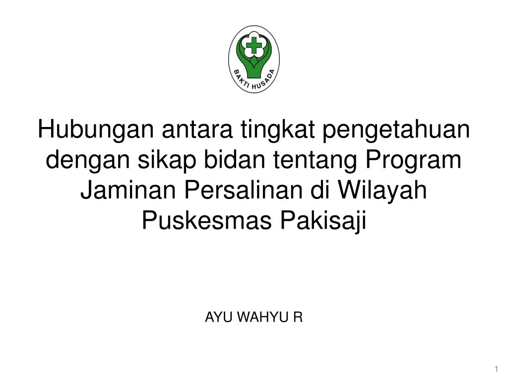 Hubungan antara tingkat pengetahuan dengan sikap bidan tentang Program Jaminan Persalinan di Wilayah Puskesmas Pakisaji. AYU WAHYU R. Latar belakang. AKI di Indonesia masalahan penting yang perlu mendapat penanganan serius .