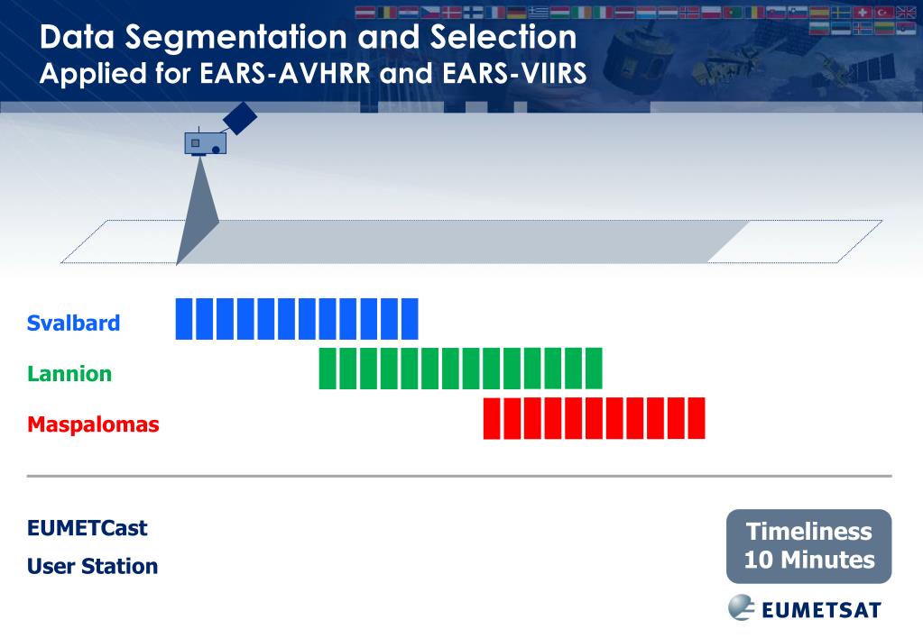 Data Segmentation and SelectionApplied for EARS-AVHRR and EARS-VIIRS Svalbard Lannion Maspalomas Timeliness10 Minutes EUMETCast User Station