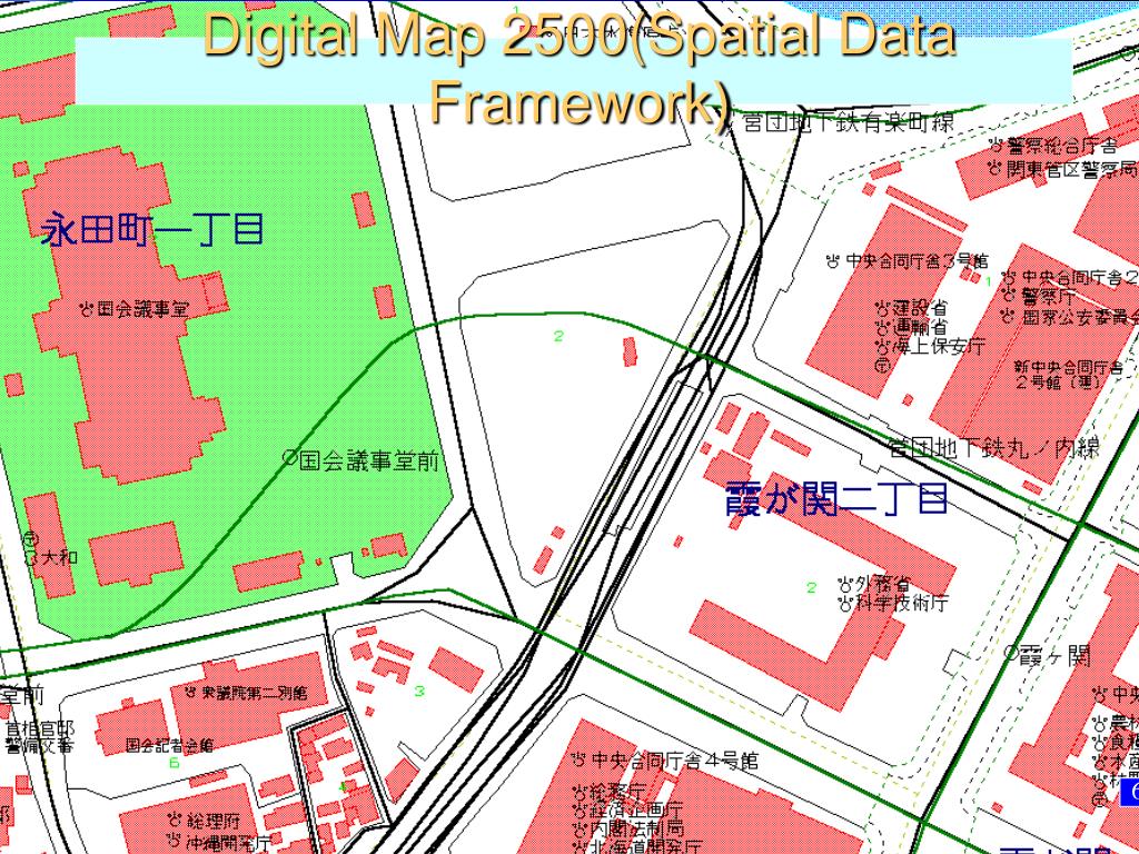 Agreement of Implementation • Digitization of geographic information and internet service • Digital Map 2500(Spatial Data Framework) • Digital Map 25000(Spatial Data Framework) • Clearinghouse development • National Standard