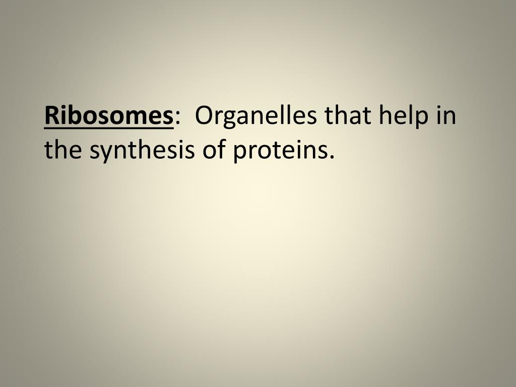 Ribosomes: Organelles that help in the synthesis of proteins.