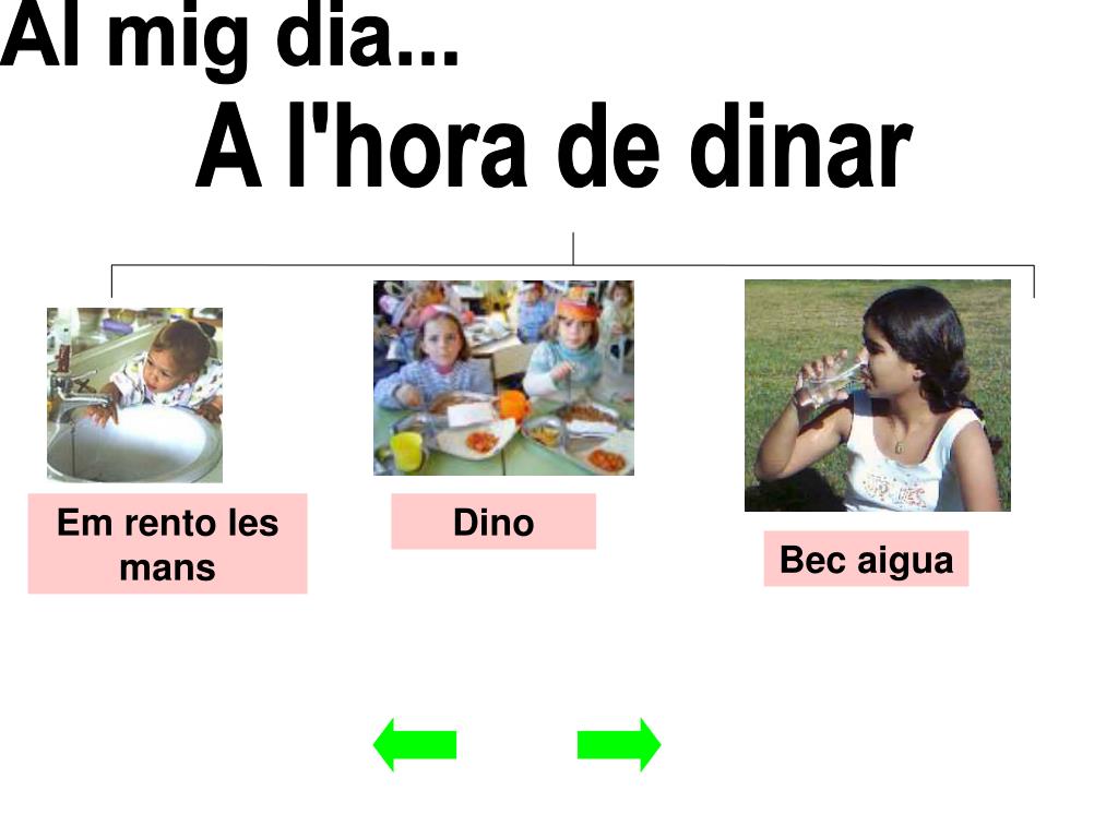 Al mig dia... A l'hora de dinar Em rento les mans Dino Bec aigua