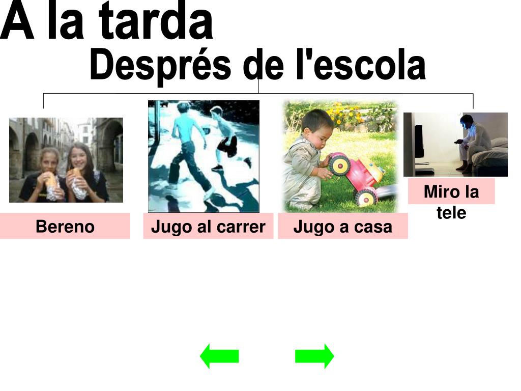 A la tarda Després de l'escola Miro la tele Bereno Jugo al carrer Jugo a casa