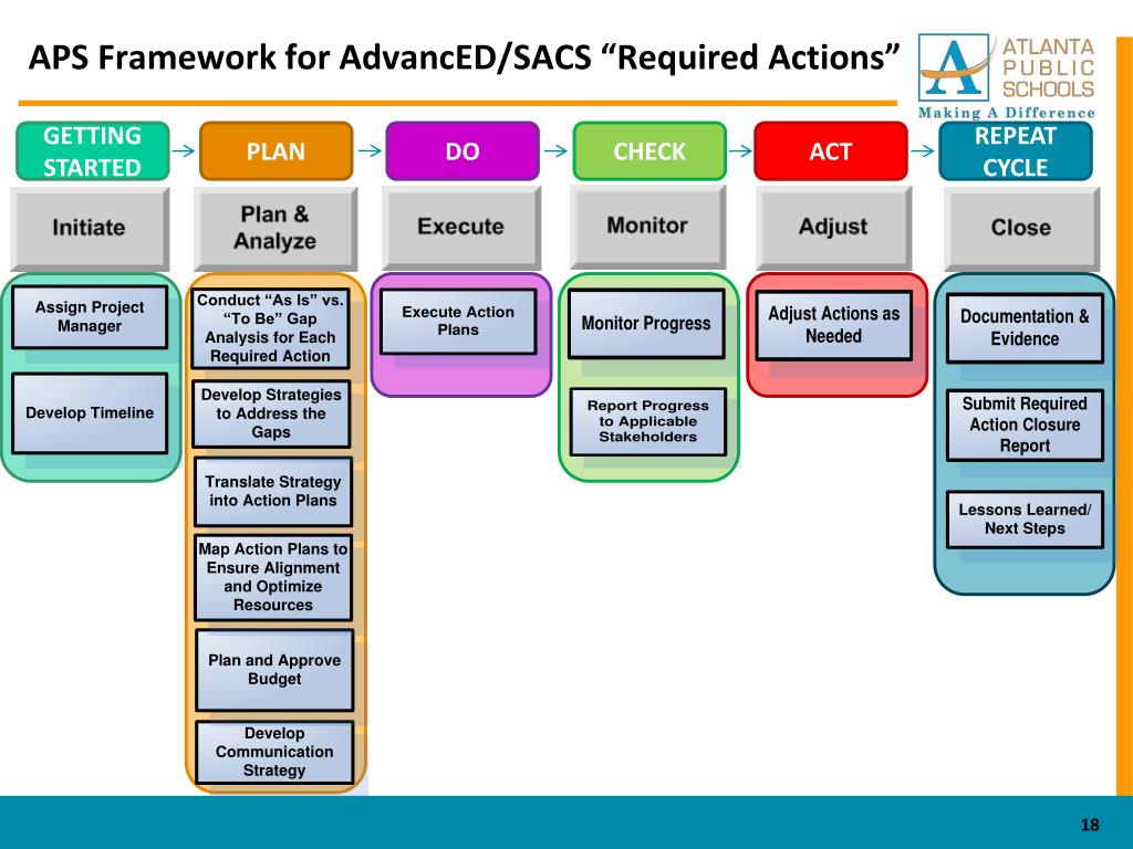 APS Framework for AdvancED/SACS “Required Actions” GETTING STARTED PLAN DO CHECK ACT REPEAT CYCLE