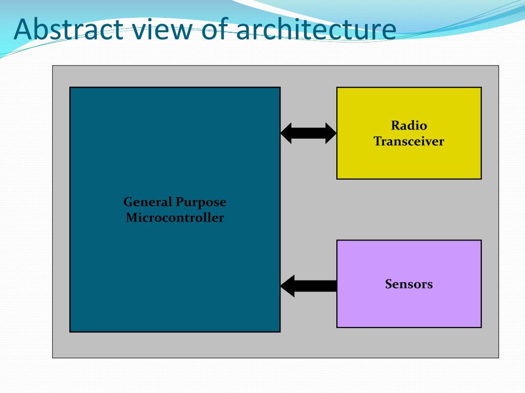Abstract view of architecture General Purpose Microcontroller Radio Transceiver Shared Memory Event Processor Sensors Slave Blocks