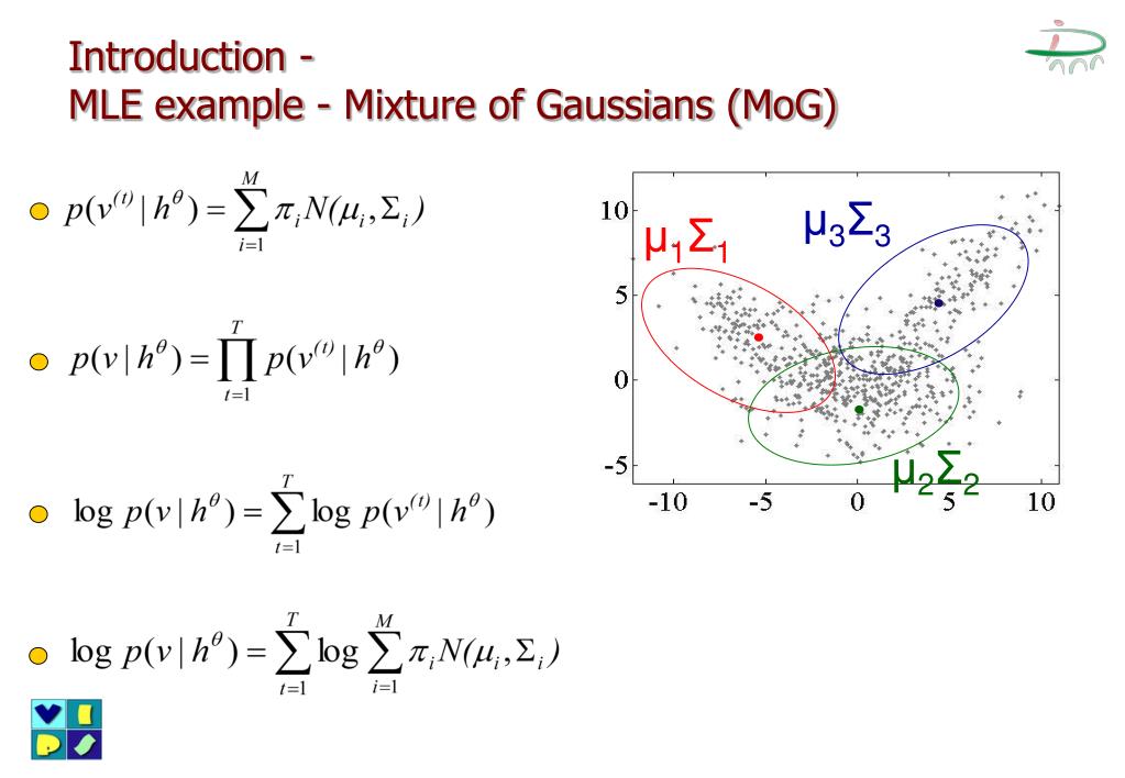 Introduction - MLE example - Mixture of Gaussians (MoG) μ3Σ3 μ1Σ1 μ2Σ2