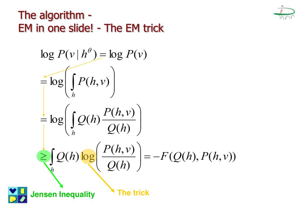 The algorithm - EM in one slide! - The EM trick The trick Jensen Inequality