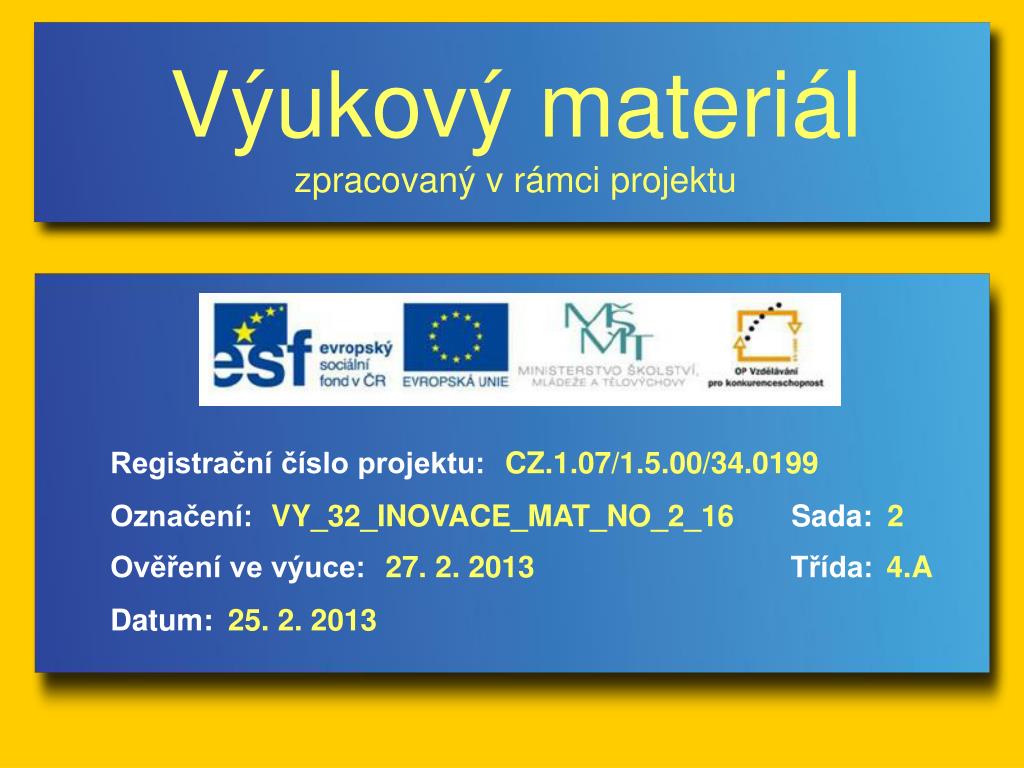 Výukový materiál zpracovaný v rámci projektu Registrační číslo projektu: CZ.1.07/1.5.00/34.0199 Označení: VY_32_INOVACE_MAT_NO_2_16 Sada: 2 Ověření ve výuce: 27. 2. 2013 Třída: 4.A Datum: 25. 2. 2013