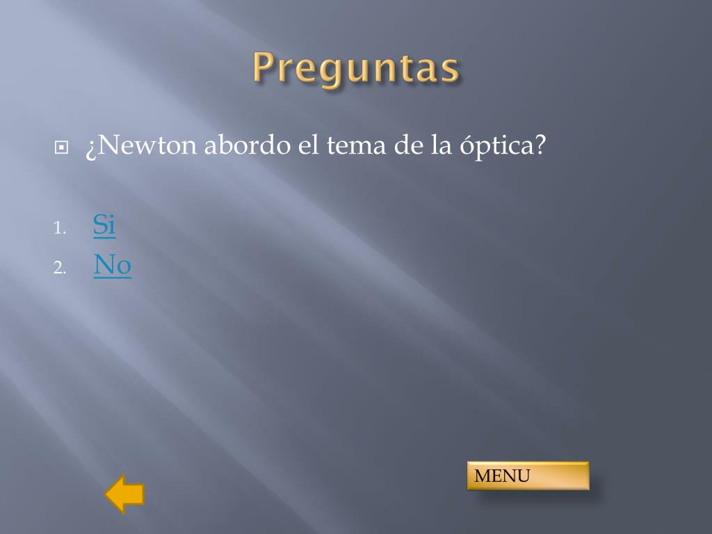 Preguntas • ¿Newton abordo el tema de la óptica? • Si • No MENU