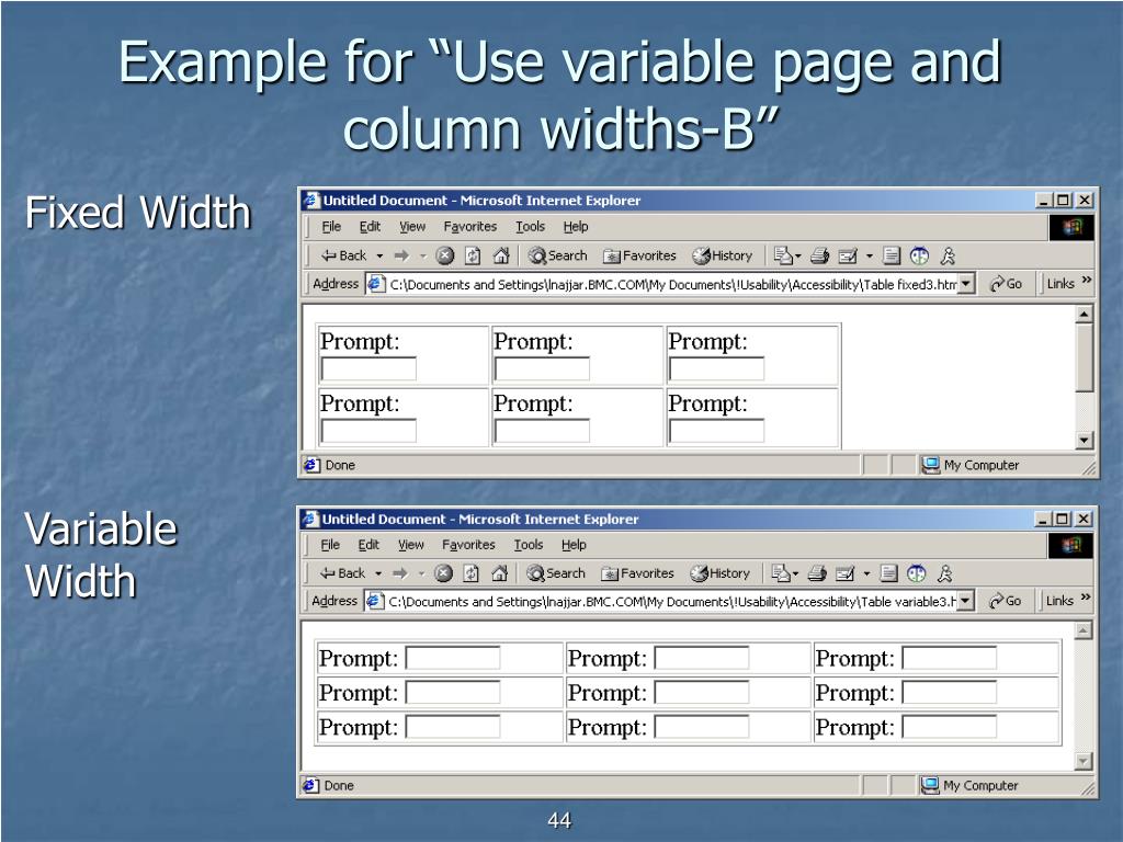 Example for “Use variable page and column widths-B” Fixed Width Variable Width