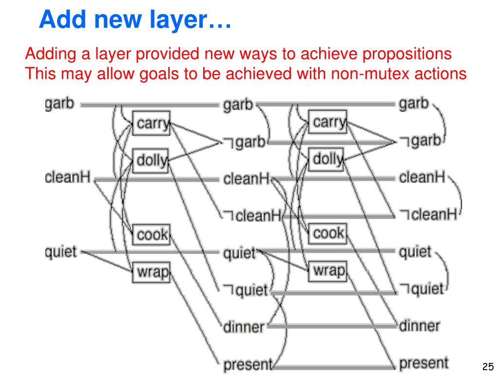 Add new layer… Adding a layer provided new ways to achieve propositionsThis may allow goals to be achieved with non-mutex actions