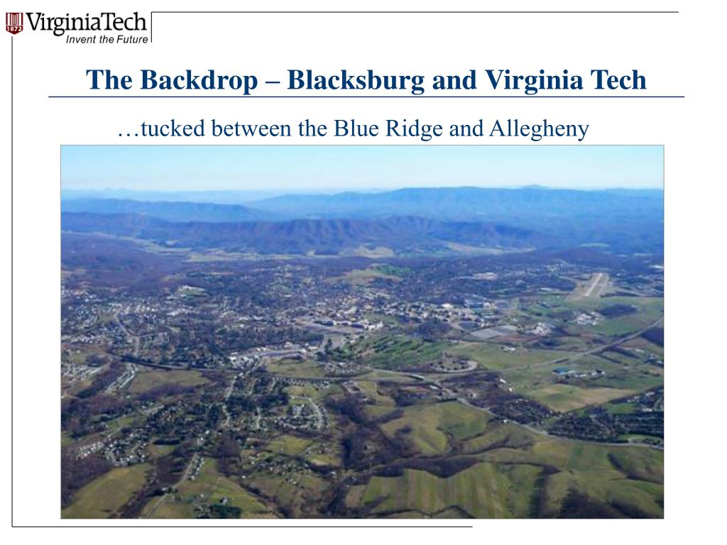 The Backdrop – Blacksburg and Virginia Tech …tucked between the Blue Ridge and Allegheny
