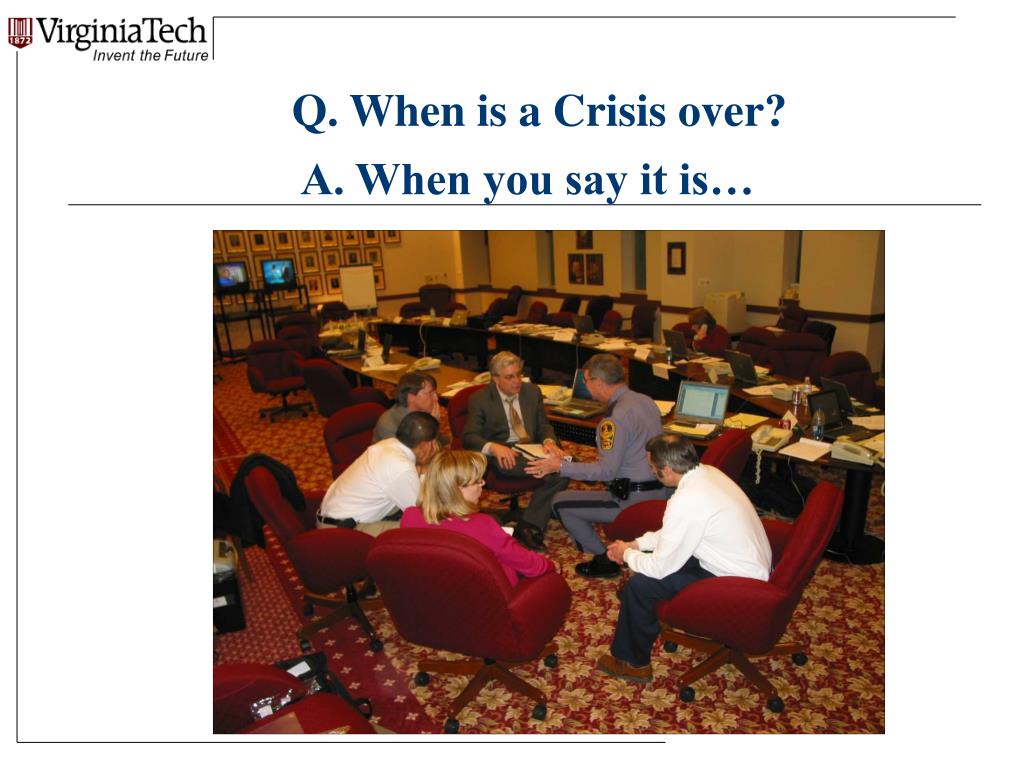 Q. When is a Crisis over? A. When you say it is…