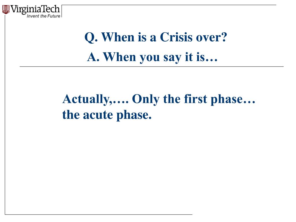 Q. When is a Crisis over? A. When you say it is… Actually,…. Only the first phase… the acute phase.