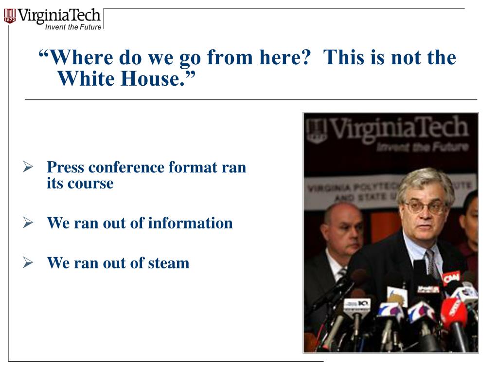 “Where do we go from here? This is not the White House.” • Press conference format ran its course • We ran out of information • We ran out of steam
