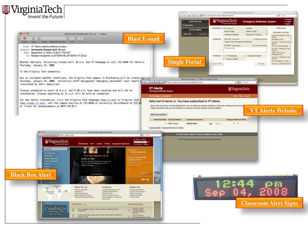 Blast E-mail Single Portal VT Alerts Website Black Box Alert Classroom Alert Signs