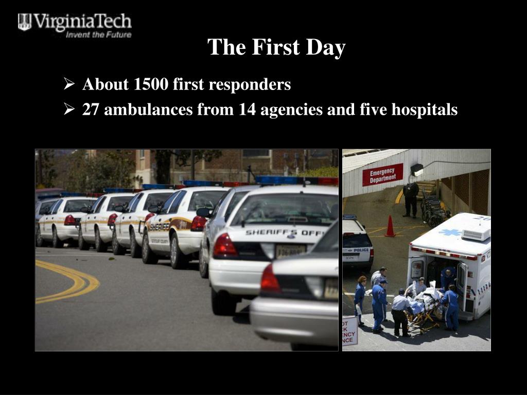 The First Day • About 1500 first responders • 27 ambulances from 14 agencies and five hospitals