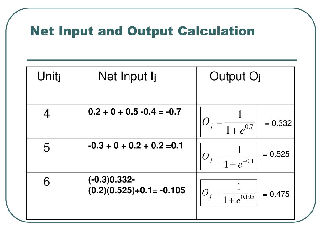 Net Input and Output Calculation = 0.332 = 0.525 = 0.475