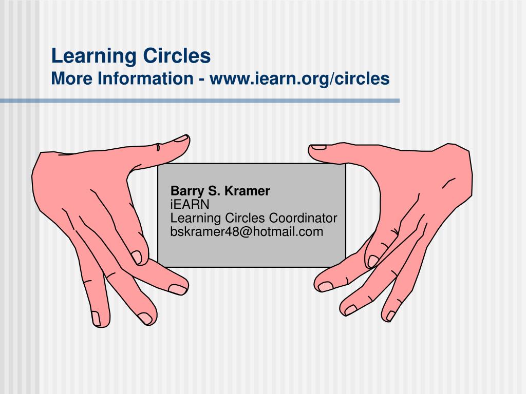 Barry S. KrameriEARN Learning Circles Coordinatorbskramer48@hotmail.com Learning CirclesMore Information - www.iearn.org/circles