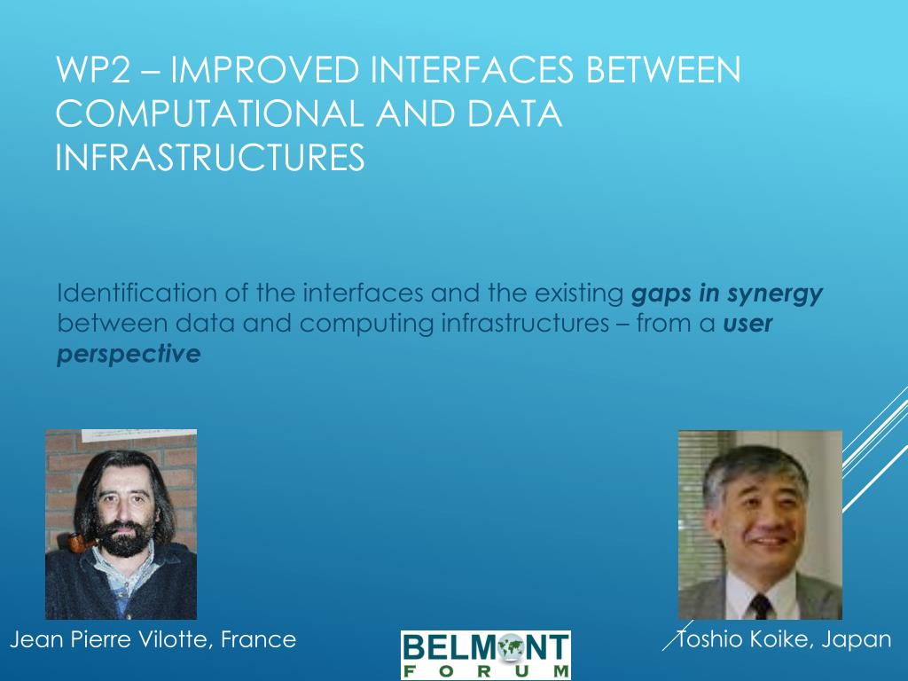 WP2 – Improved Interfaces between Computational and Data Infrastructures Identification of the interfaces and the existing gaps in synergy between data and computing infrastructures – from a user perspective Toshio Koike, Japan Jean Pierre Vilotte, France