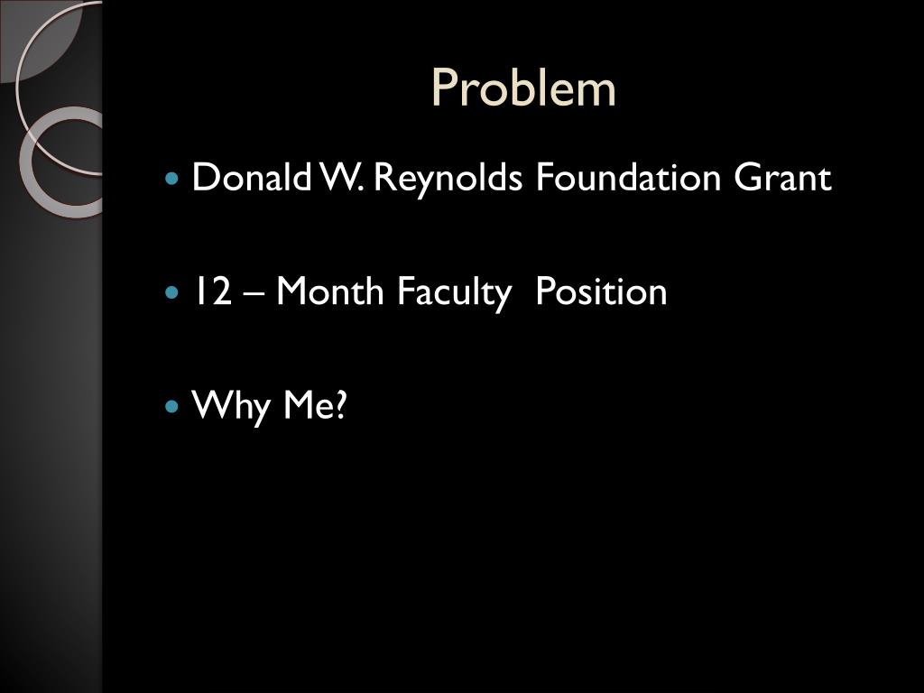 Problem • Donald W. Reynolds Foundation Grant • 12 – Month Faculty Position • Why Me?