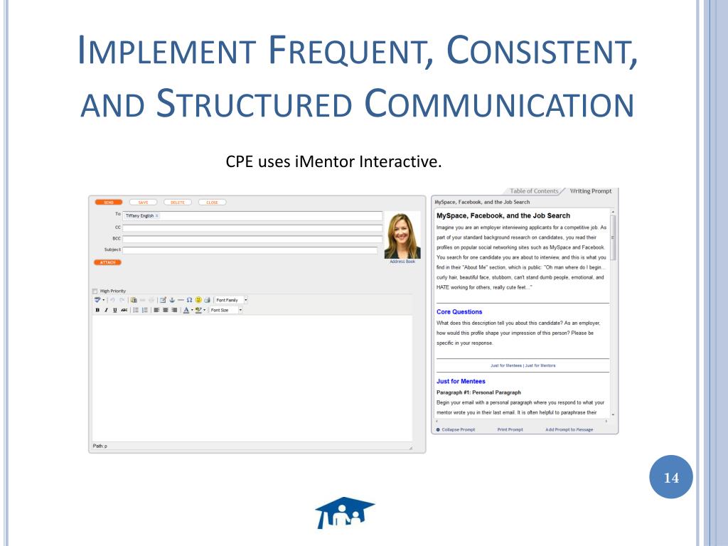 Implement Frequent, Consistent, and Structured Communication CPE uses iMentorInteractive.