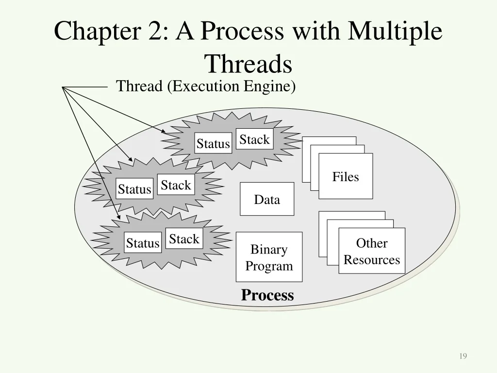 Files Files Files Stack Stack Stack Status Status Status Chapter 2: A Process with Multiple Threads Thread (Execution Engine) Data Other Resources Binary Program Process