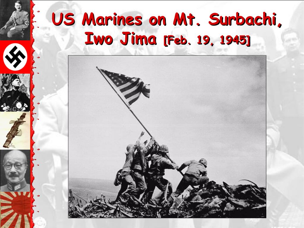 1945. Allied Counter-Offensive: “ Island-Hopping, ” 1942-5. 3. 4. 2. 1. US Marines on Mt. Surbachi, Iwo Jima [Feb. 19, 1945]. Yalta: February, 1945. FDR wants quick Soviet entry into Pacific war.