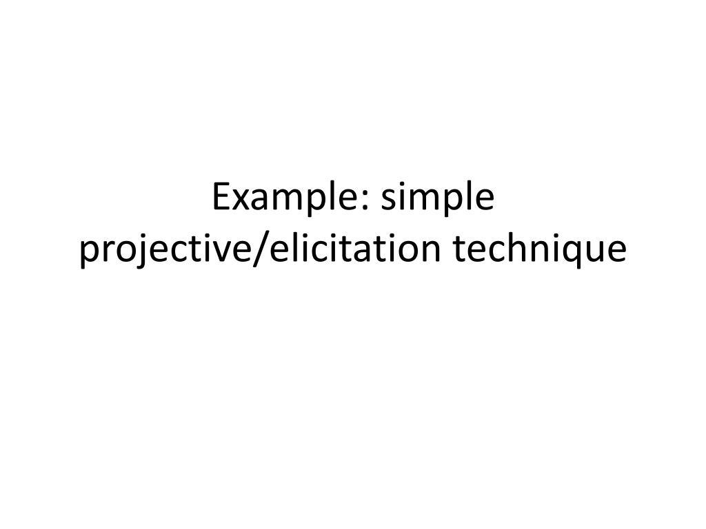 Projective Techniques • Use stimuli that allow participants to project their subjective or deep-seated beliefs onto other people or objects. • Particularly useful when direct questioning will not work.