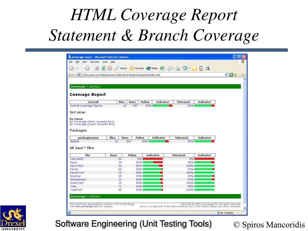 HTML Coverage ReportSource Code Annotations Software Engineering (Unit Testing Tools)