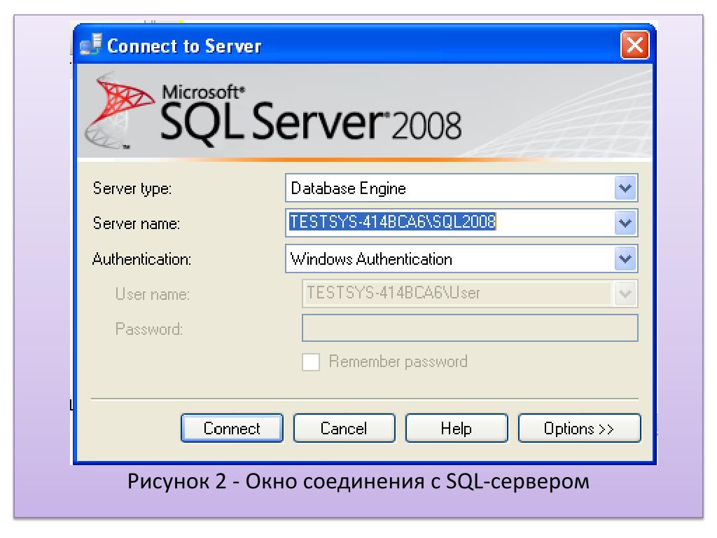 Рисунок 2 - Окно соединения с SQL-сервером