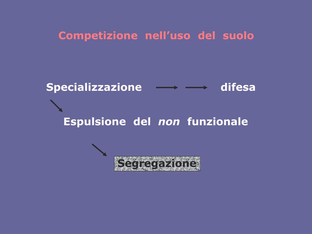 Competizione nell’uso del suolo Specializzazione difesa Espulsione del non funzionale Segregazione