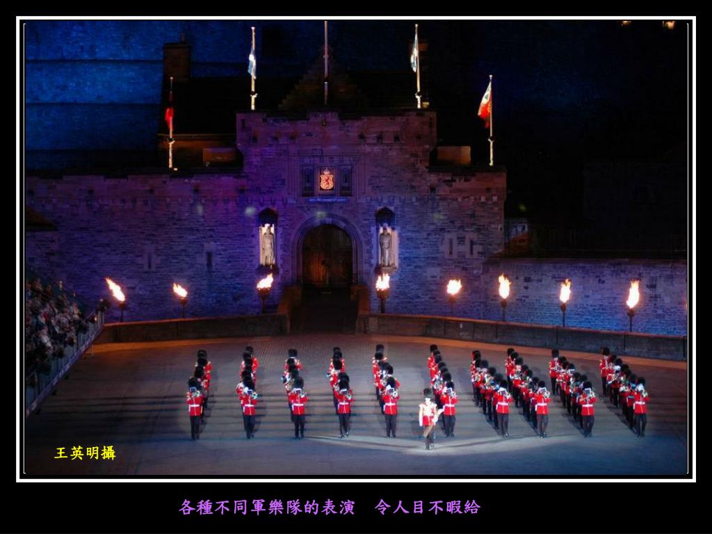 王英明攝 以愛丁堡城堡為背景 在不斷變幻的燈光下 排出各種仗陣