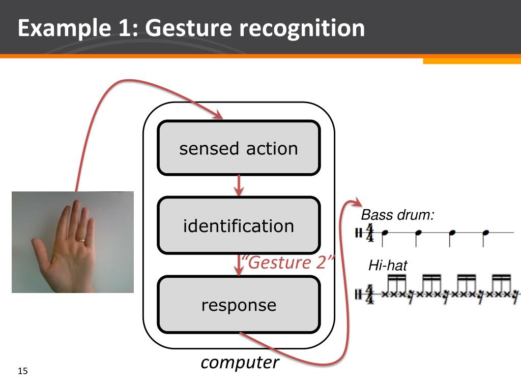 Example 1: Gesture recognition sensed action identification Bass drum: “Gesture 2” Hi-hat response computer