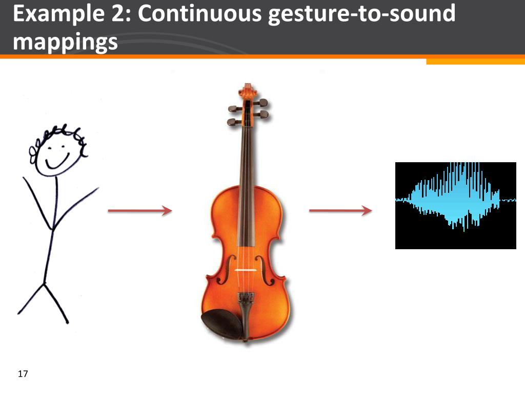 Example 2: Continuous gesture-to-sound mappings sensed action interpretation mapping sound generation human + control interface computer