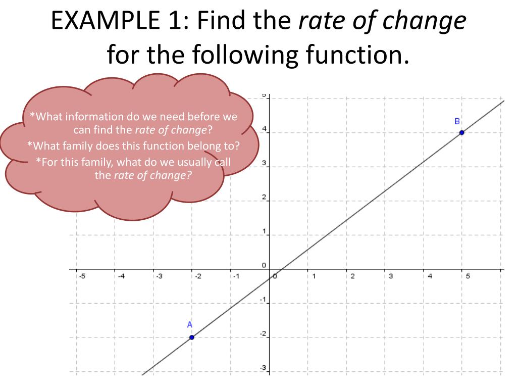 EXAMPLE 1: Find the rate of change for the following function. *What information do we need before we can find the rate of change? *What family does this function belong to? *For this family, what do we usually call the rate of change?