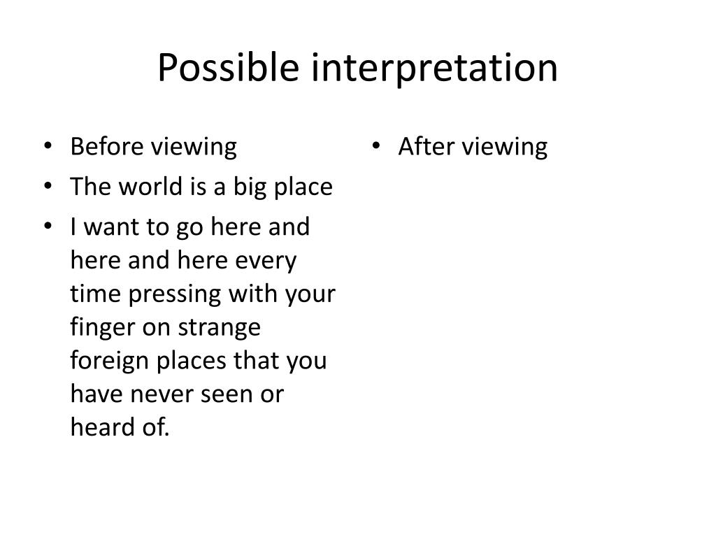 Possible interpretation • Before viewing • The world is a big place • There is a world out there • After viewing
