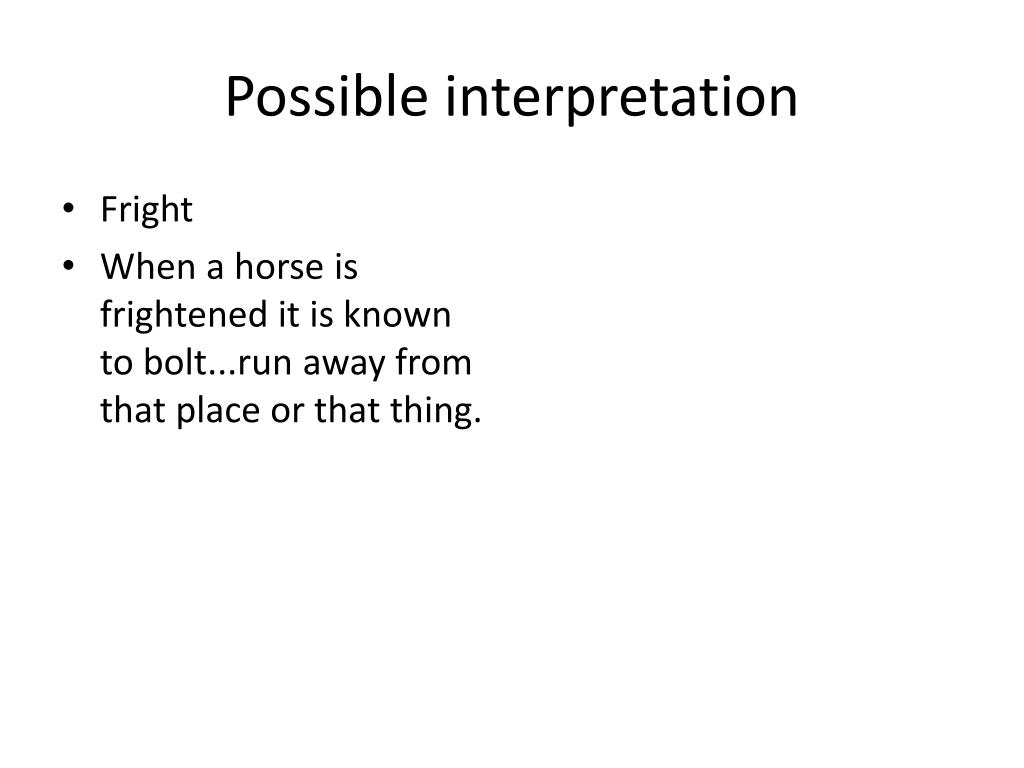 Possible interpretation • Fright • When a horse is frightened it is known to bolt...run away from that place or that thing.