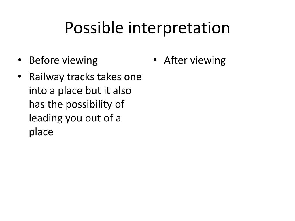Possible interpretation • Before viewing • Railway tracks takes one into a place but it also has the possibility of leading you out of a place • After viewing