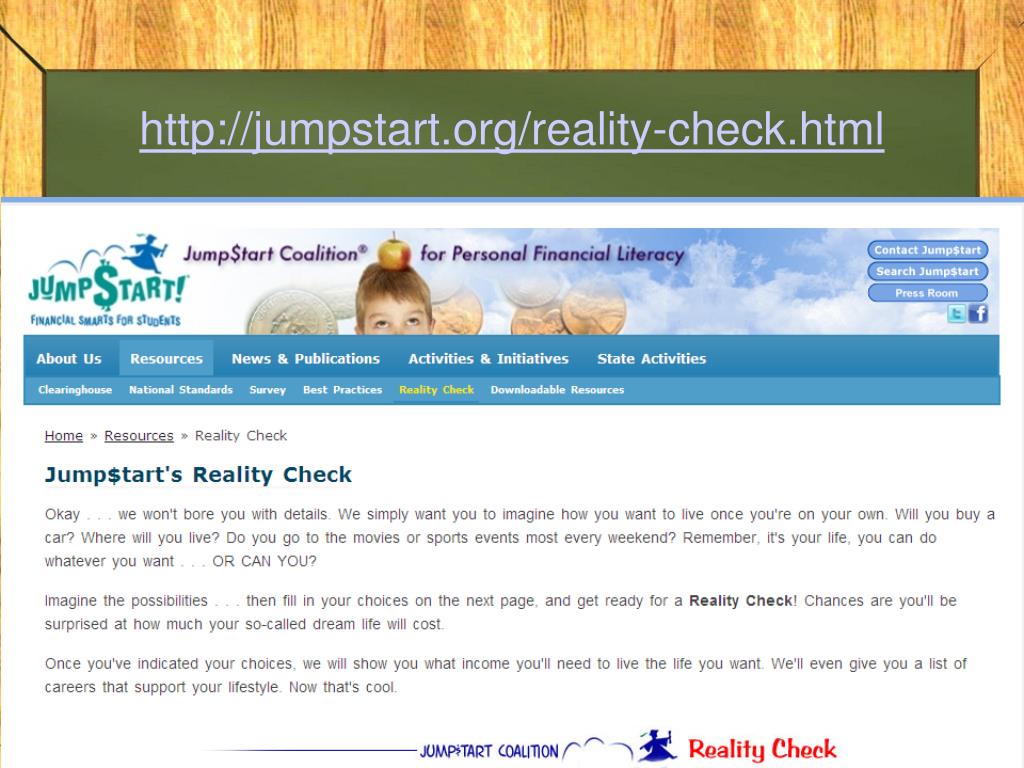Financial Calculators • Dinkytown http://www.dinkytown.net/ • Bankrate http://www.bankrate.com/calculators.aspx • Yahoo Finance http://finance.yahoo.com/calculator/index/ • Cost of Living Calculator • BestPlaces http://www.bestplaces.net/col/ • Many, Many More