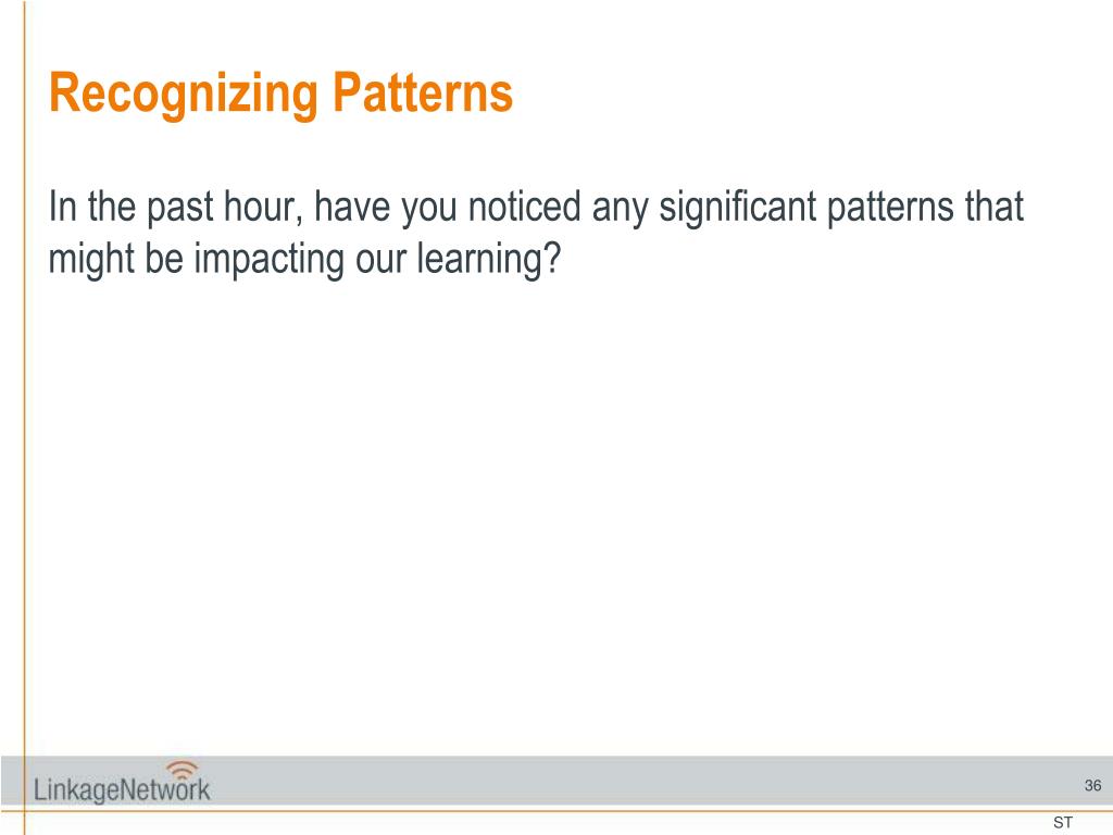 Recognizing Patterns In the past hour, have you noticed any significant patterns that might be impacting our learning?