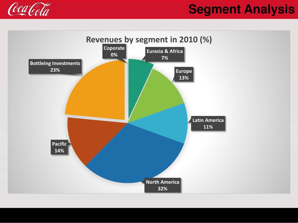 Strengths • Over 500 different brands consisting of over 3000 beverage products • Located in over 200 different countries • Consumers consume over 1.7 billion servings of Coca-Cola products worldwide each day • Net income increase of 5 billion from last year • 30% of Coca Cola's revenues come from United States • Coca-Cola owns and markets four of the world's top 5 nonalcoholic sparkling beverage brands. • 12% increase in case volume in Coke's Eurasia & Asia segment, with China posting a 41% increase