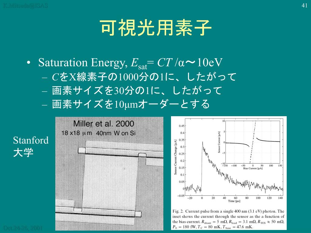 K.Mitsuda@ISAS X線マイクロカロリメータの物理−基礎と最新事情− 宇宙研 満田和久 天文用検出器研究会@名古屋大学 2001年10月24, 25, (26)日