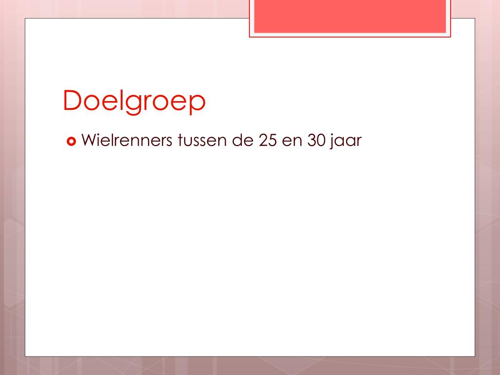 Doelgroep • Wielrenners tussen de 25 en 30 jaar
