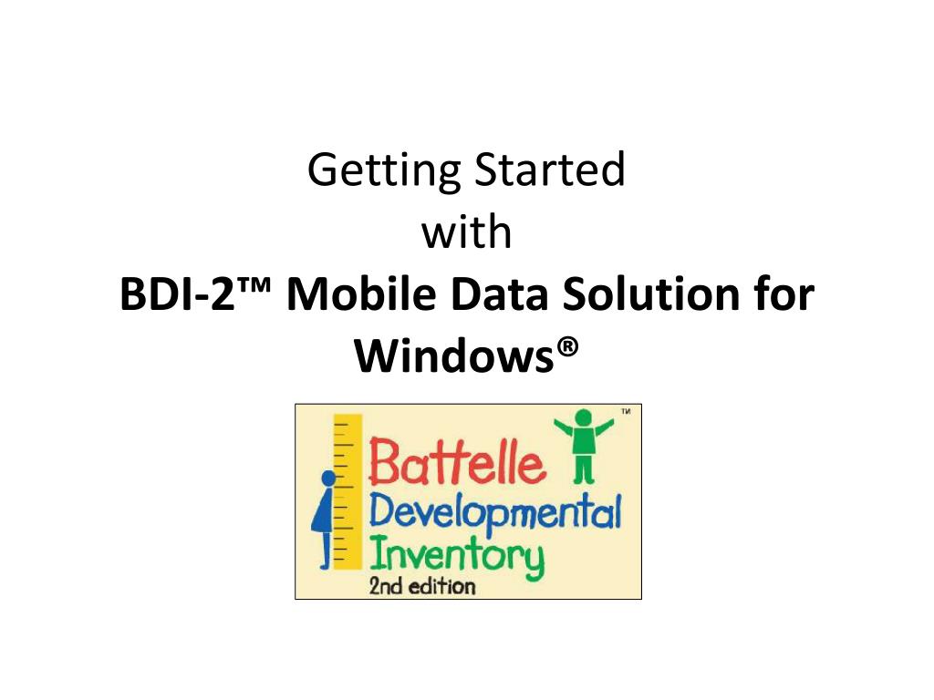 Getting Started with BDI-2™ Mobile Data Solution for Windows®. Starting and Logging In. Double click the BDI-2 icon on your desktop to start the program. Enter User ID and Password then click the Sign In button. Adding a Child Record Children can be added directly into the MDS.