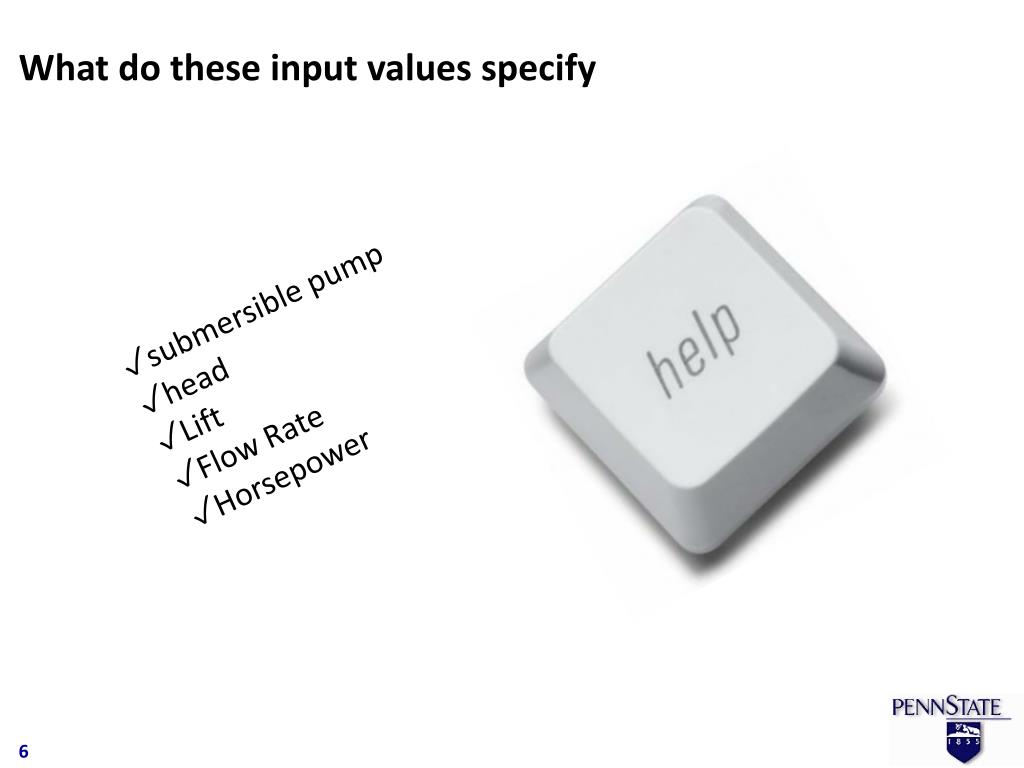 What do these input values specify ✓submersible pump ✓head ✓Lift ✓Flow Rate ✓Horsepower
