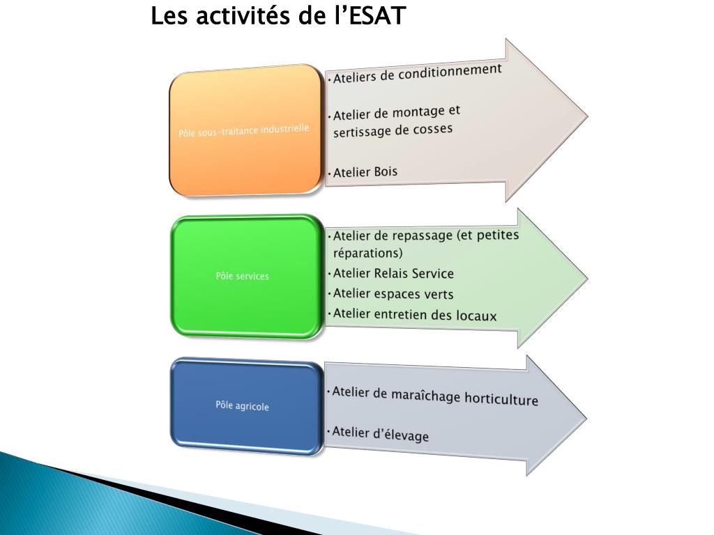 Quel est le profil du public accueilli au CAT et au Foyer d’hébergement? • 200 personnes adultes • Durée de prise en charge : 13 ans • Principales pathologies dont souffrent les personnes : • Troubles mentaux • Troubles du comportement • Déficience intellectuelle moyenne et légère