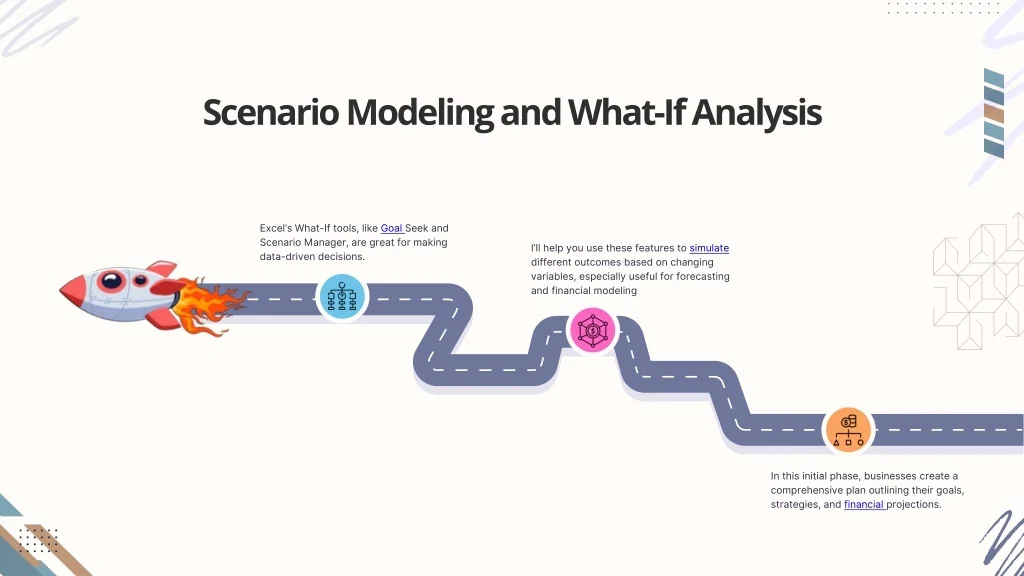 Scenario Modeling and What-If Analysis Excel’s What-If tools, like Goal Seek and Scenario Manager, are great for making data-driven decisions. I’ll help you use these features to simulate different outcomes based on changing variables, especially useful for forecasting and financial modeling In this initial phase, businesses create a comprehensive plan outlining their goals, strategies, and financial projections.