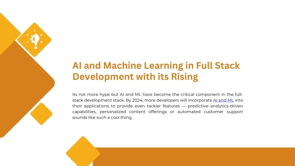AI and Machine Learning in Full Stack Development with its Rising Its not more hype but AI and ML have become the critical component in the full-stack development stack. By 2024, more developers will incorporate AI and ML into their applications to provide even tackier features — predictive analytics-driven capabilities, personalized content offerings or automated customer support sounds like such a cool thing. Our Mission