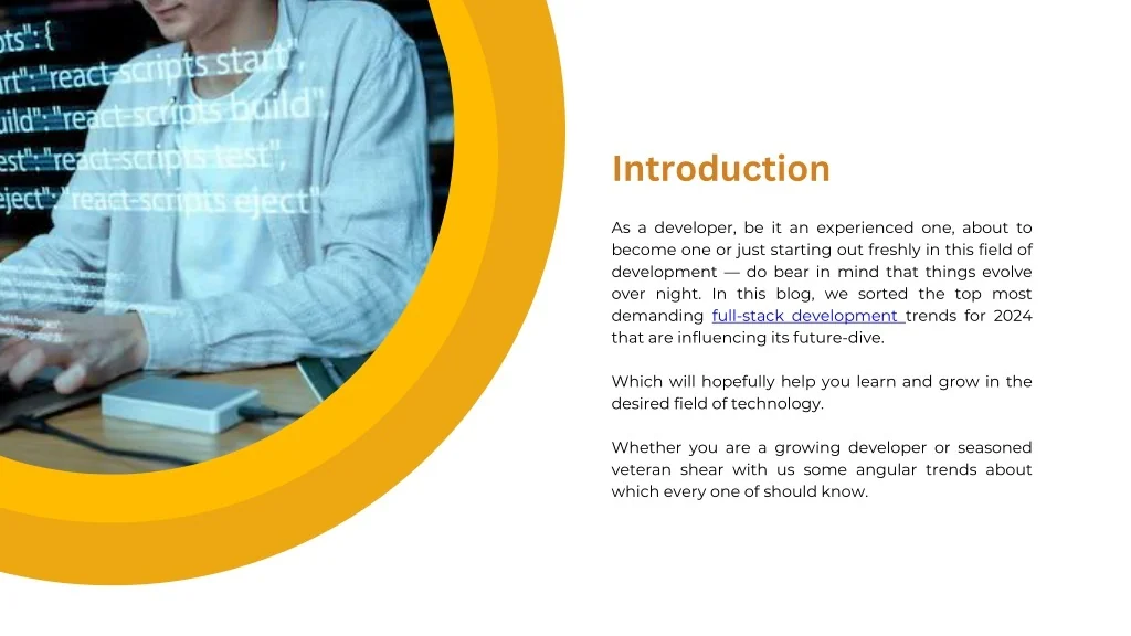 Introduction As a developer, be it an experienced one, about to become one or just starting out freshly in this field of development — do bear in mind that things evolve over night. In this blog, we sorted the top most demanding full-stack development trends for 2024 that are influencing its future-dive. Which will hopefully help you learn and grow in the desired field of technology. Whether you are a growing developer or seasoned veteran shear with us some angular trends about which every one of should know.